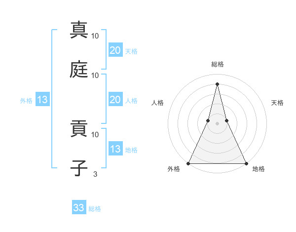 真庭 貢子さんを姓名の画数から五運を鑑定