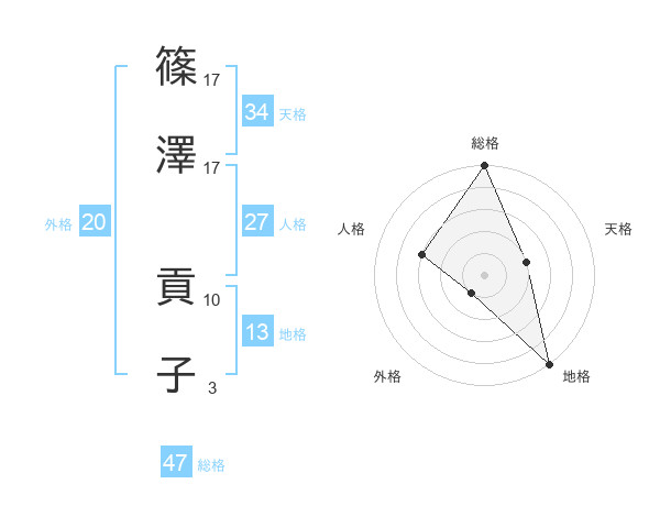 篠澤 貢子さんを姓名の画数から五運を鑑定