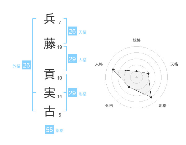 兵藤 貢実古さんを姓名の画数から五運を鑑定