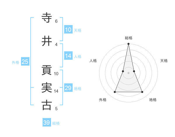 寺井 貢実古さんの総格は39画の5点!