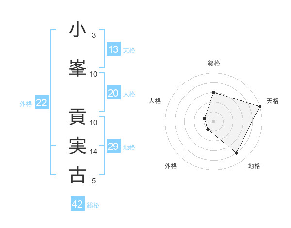 小峯 貢実古さんを姓名の画数から五運を鑑定