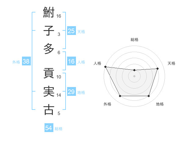 鮒子多 貢実古さんの人格は16画の5点