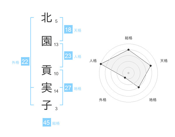 北園 貢実子さんを姓名の画数から五運を鑑定