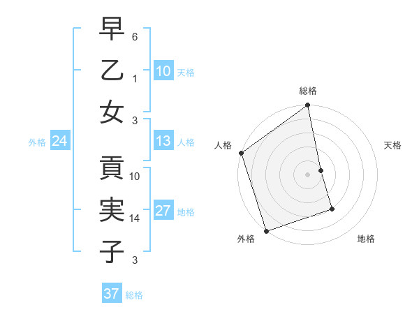 早乙女 貢実子さんを姓名の画数から五運を鑑定