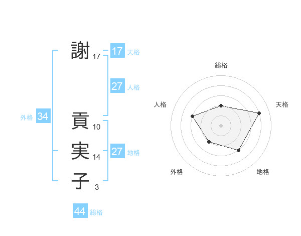 謝 貢実子さんの総格は44画の2点!