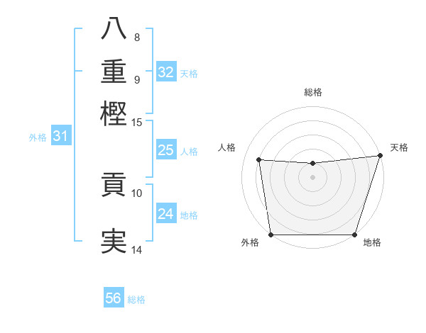 八重樫 貢実さんの天格は32画の5点!