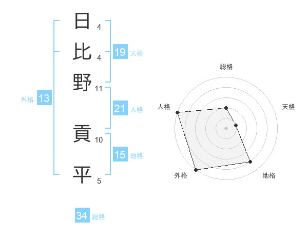 日比野 貢平さんを姓名の画数から五運を鑑定