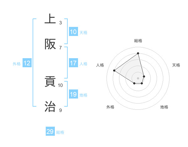 上阪 貢治さんを姓名の画数から五運を鑑定