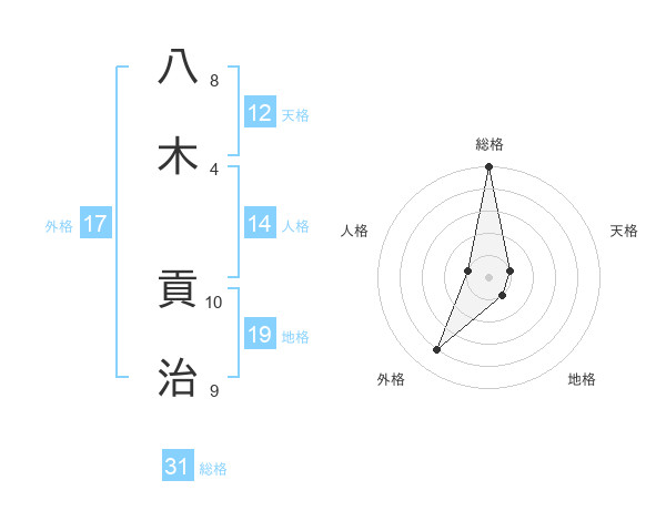 八木 貢治さんの総格は31画の5点!