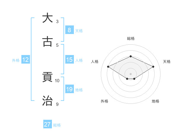 大古 貢治さんの総格は27画の3点!