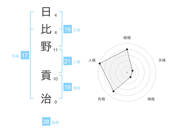 日比野 貢治さんを姓名の画数から五運を鑑定
