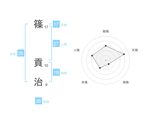 篠 貢治さんの天格は17画の4点!