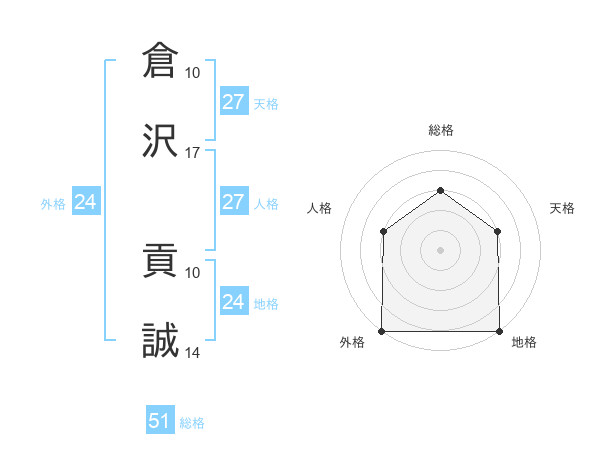 倉沢 貢誠さんの天格は27画の3点!
