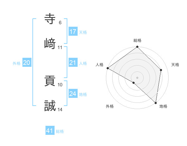 寺﨑 貢誠さんの総格は41画の5点!