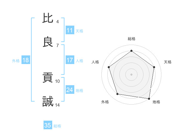 比良 貢誠さんの総格は35画の4点!
