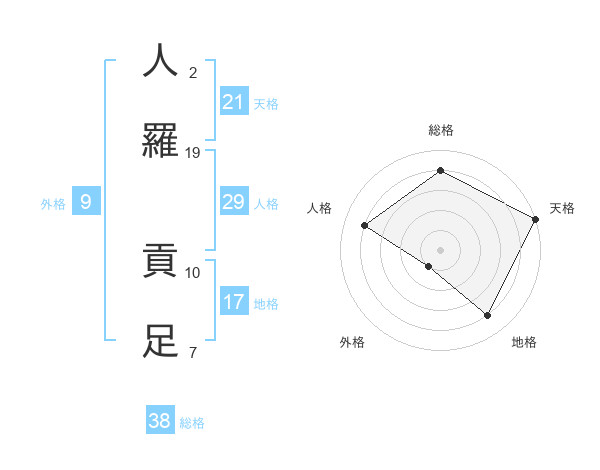 人羅 貢足さんの総格は38画の4点!