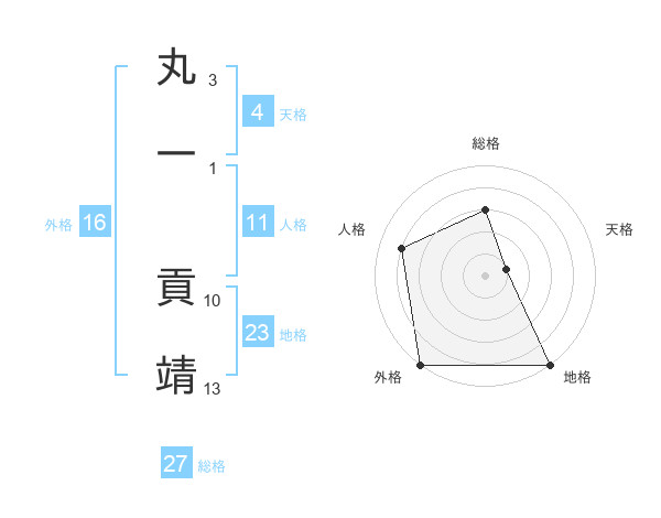 丸一 貢靖さんの総格は27画の3点!