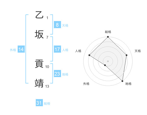 乙坂 貢靖さんを姓名の画数から五運を鑑定