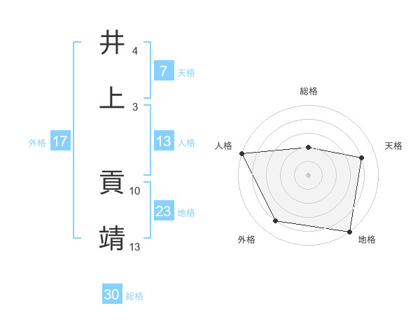 井上 貢靖さんの天格は7画の4点!