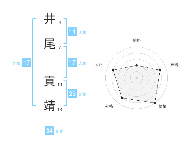 井尾 貢靖さんの天格は11画の4点!