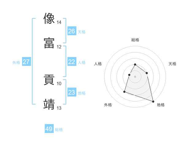 像富 貢靖さんの総格は49画の2点!