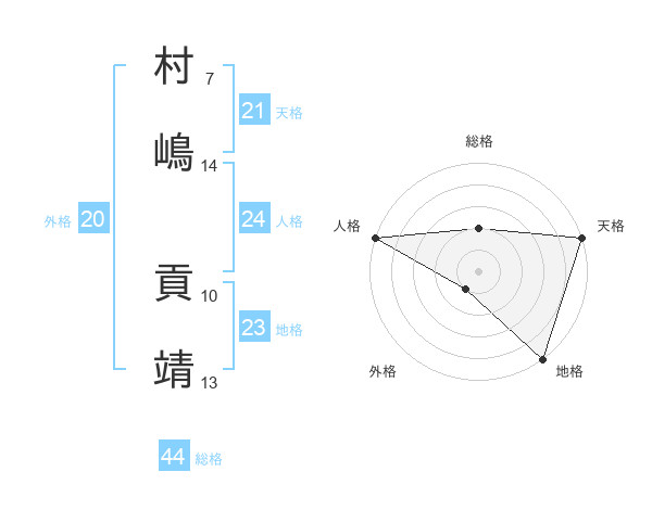 村嶋 貢靖さんの天格は21画の5点!