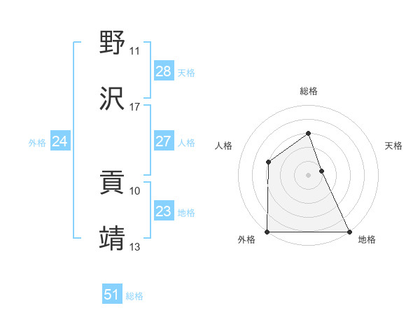 野沢 貢靖さんを姓名の画数から五運を鑑定