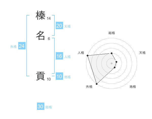 榛名 貢さんの総格は30画の2点!