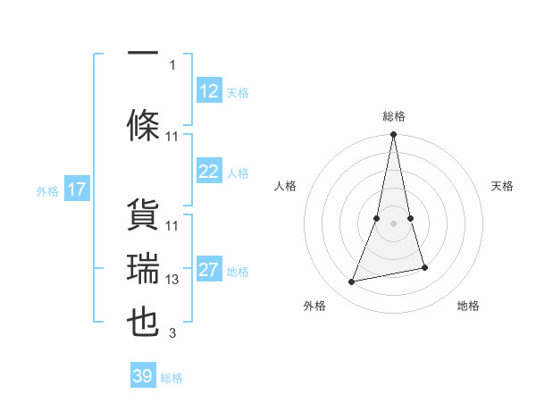 一條 貨瑞也さんを姓名の画数から五運を鑑定