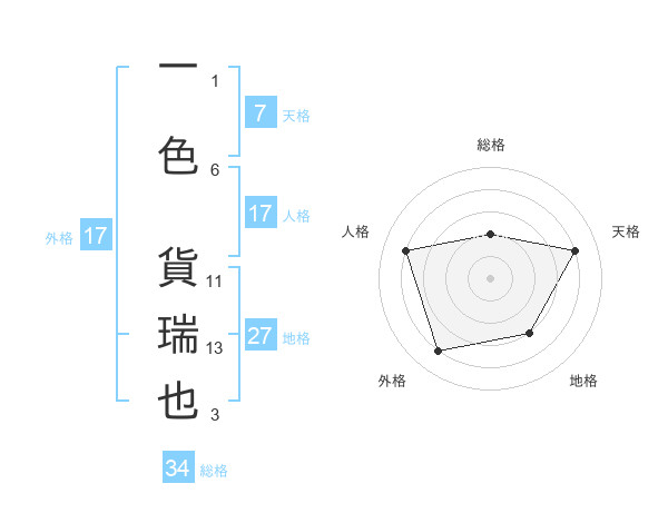 一色 貨瑞也さんを姓名の画数から五運を鑑定