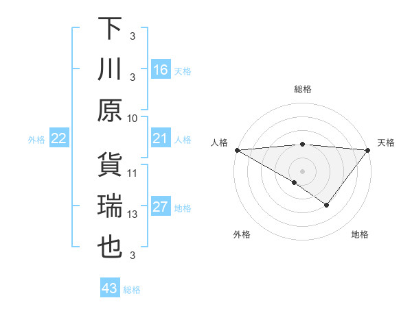 下川原 貨瑞也さんを姓名の画数から五運を鑑定