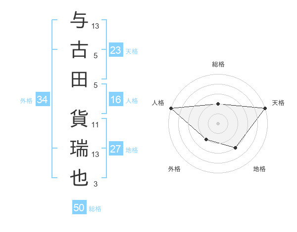与古田 貨瑞也さんの天格は23画の5点