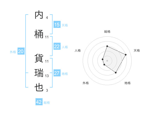 内桶 貨瑞也さんを姓名の画数から五運を鑑定