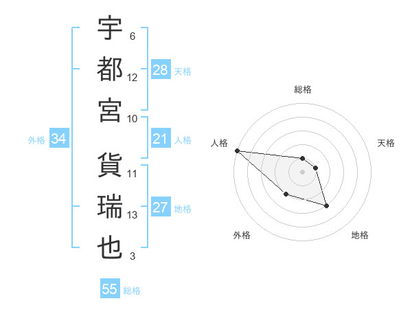 宇都宮 貨瑞也さんの人格は21画の5点!