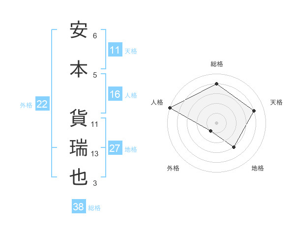 安本 貨瑞也さんを姓名の画数から五運を鑑定
