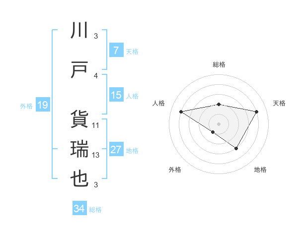 川戸 貨瑞也さんを姓名の画数から五運を鑑定
