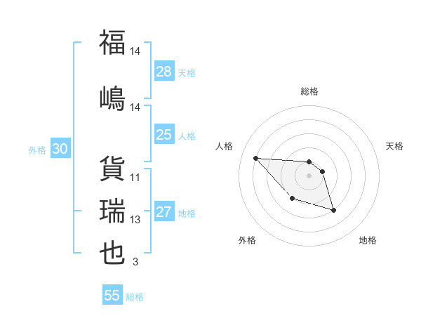 福嶋 貨瑞也さんを姓名の画数から五運を鑑定