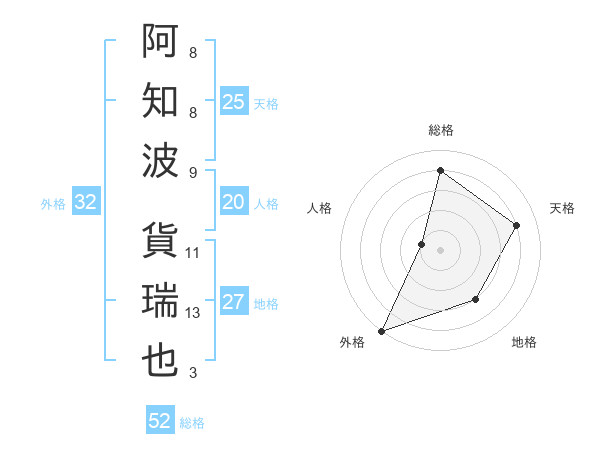 阿知波 貨瑞也さんの総格は52画の4点!