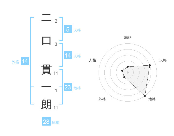 二口 貫一朗さんを姓名の画数から五運を鑑定