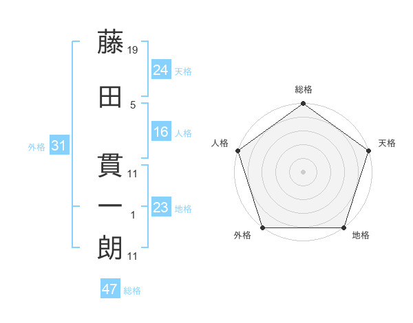 藤田 貫一朗さんを姓名の画数から五運を鑑定