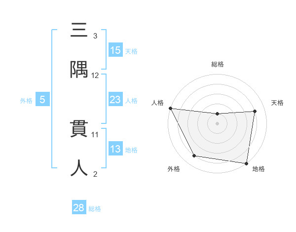 三隅 貫人さんの人格は23画の5点!