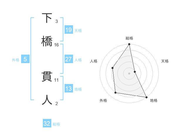 下橋 貫人さんを姓名の画数から五運を鑑定
