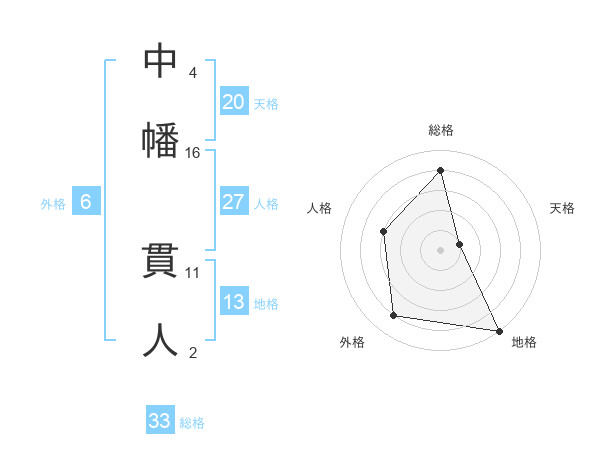 中幡 貫人さんの総格は33画の4点!