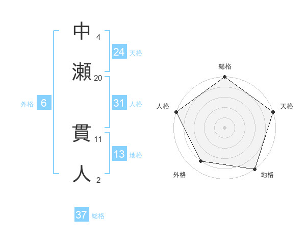 中瀬 貫人さんを姓名の画数から五運を鑑定