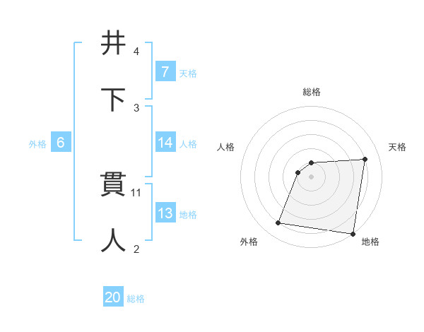 井下 貫人さんの総格は20画の1点!