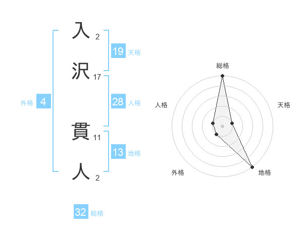入沢 貫人さんを姓名の画数から五運を鑑定
