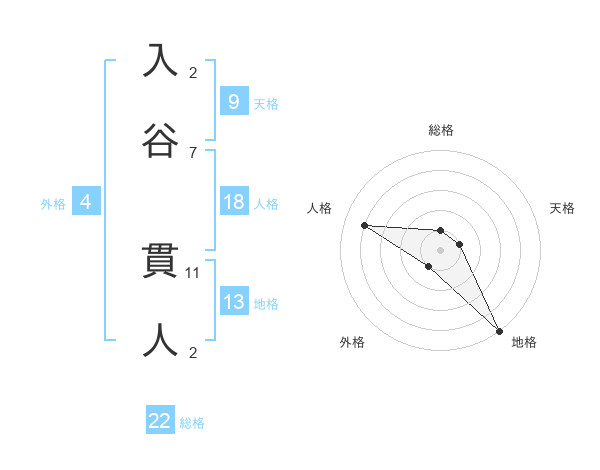 入谷 貫人さんの総格は22画の1点!