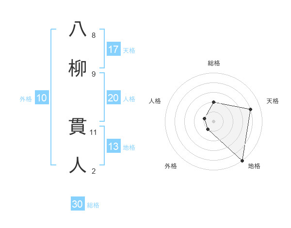 八柳 貫人さんの総格は30画の2点!