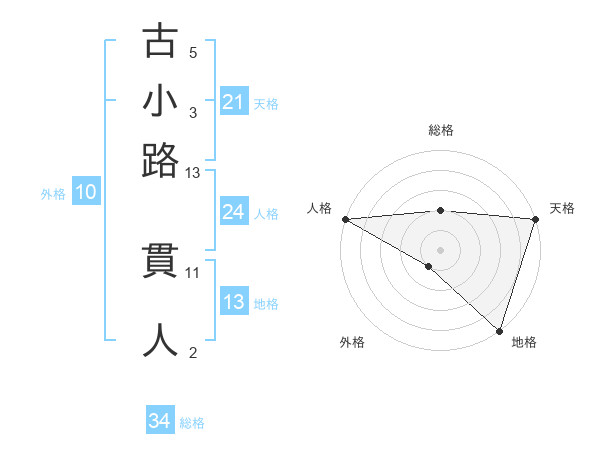古小路 貫人さんの天格は21画の5点!