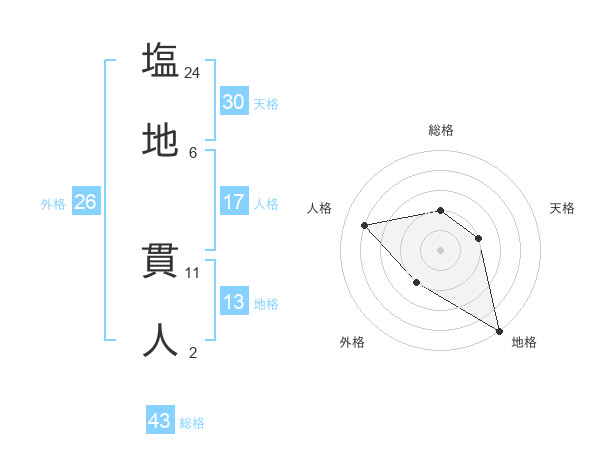塩地 貫人さんを姓名の画数から五運を鑑定